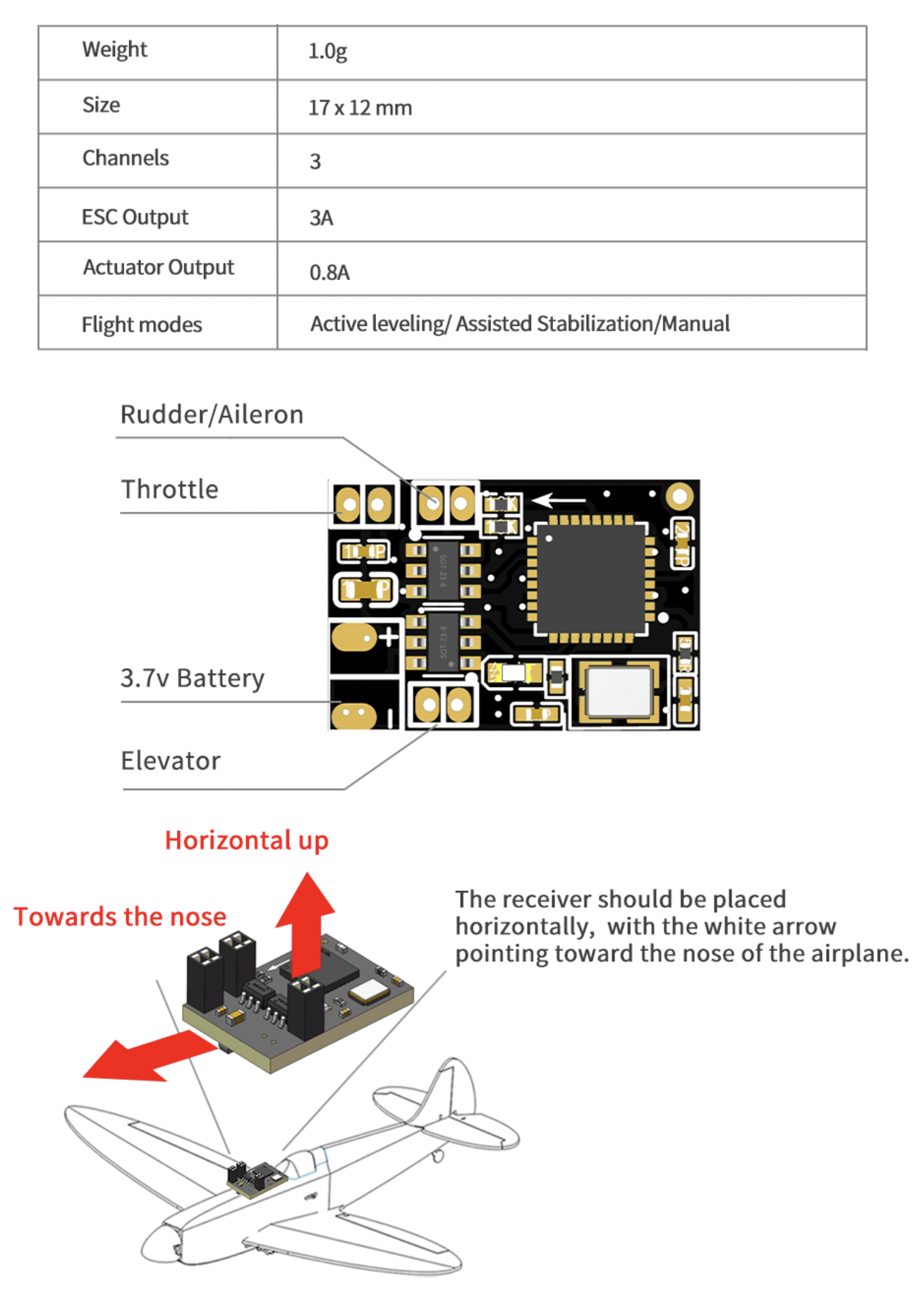 - Designed for Micro Models: The world’s smallest actuator receiver with active gyro stabilization, weighing only 1g!